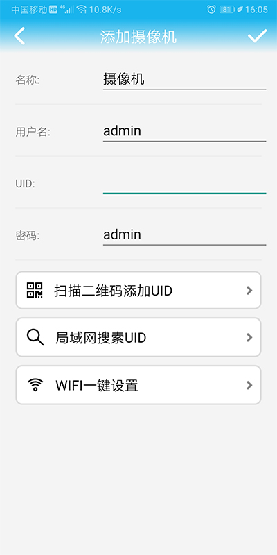 6.輸入攝像機(jī)UID完成后,點(diǎn)擊右上角“√”;