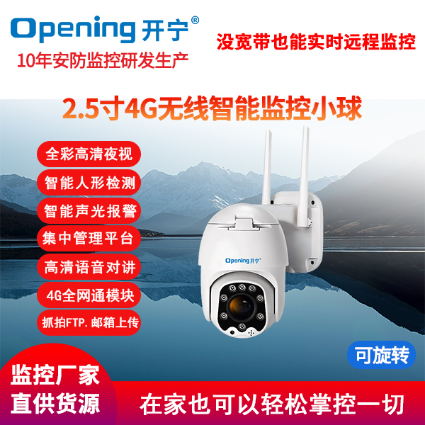 開寧2.5寸4G無線智能監(jiān)控直播慢直播小球可選變倍、定焦監(jiān)控專用鏡頭(根據(jù)需求選配),4g無線小球水平旋轉(zhuǎn):0°~320°,垂直旋轉(zhuǎn):0°~90°;4顆高效能點陣紅外燈,4顆高效能點陣白光燈;夜視10-40米;內(nèi)置高清保真拾音器及高清晰喇叭,可語音對講;