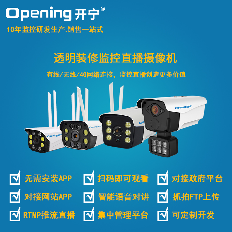4、可接入網站.公眾號.小程序.APP;支持GB28181協(xié)議;可接公安.食品.工地.生產.教育.畜牧.旅游等監(jiān)管部門平臺; 5、高清監(jiān)控直播、本地錄像錄音、報警多功能于一體;支持32/64/128G內存卡; 6、內置高清保真拾音器,有聲有色監(jiān)控直播,APP語音對講,智能語音警戒報警;