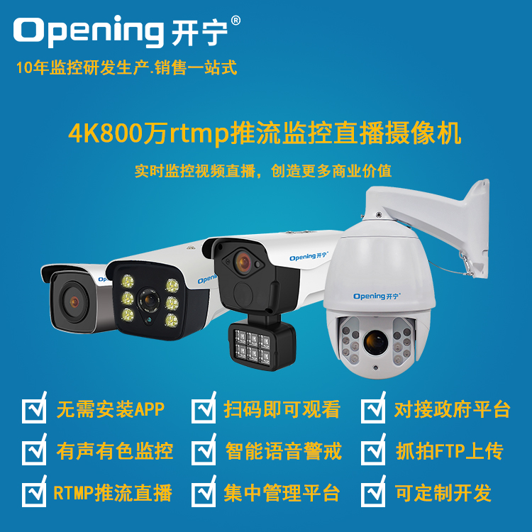 - 1、800萬rtmp推流監(jiān)控直播攝像頭,一個(gè)直播攝像機(jī)就是一套監(jiān)控直播系統(tǒng);