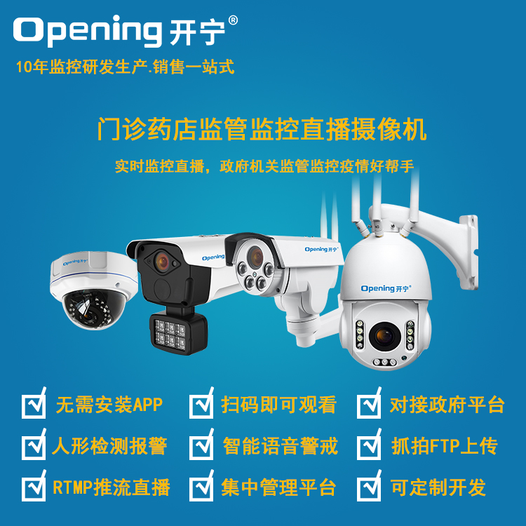 2、智能監(jiān)控錄像的同時(shí),可以監(jiān)控直播分享;政府監(jiān)管門診藥店好幫手!