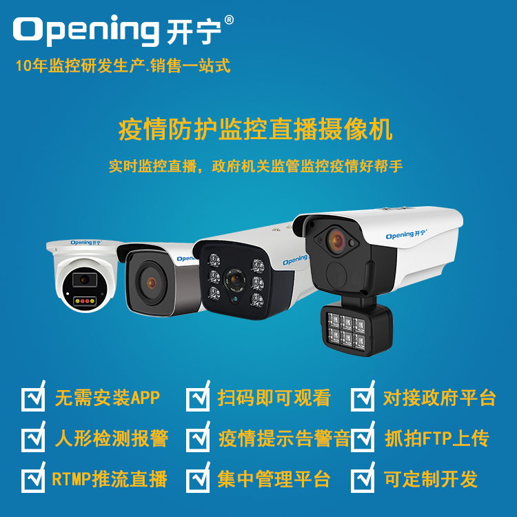 - 1、200萬/300萬/500萬/4K疫情防護(hù)監(jiān)控直播攝像機(jī),一個攝像機(jī)就是一套監(jiān)控直播系統(tǒng),室內(nèi)外可用;