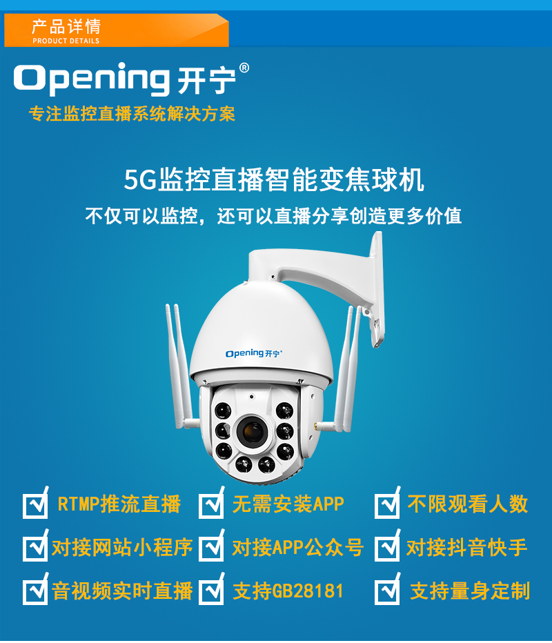 - 1、500萬/800萬7寸5G36倍監(jiān)控直播智能球機,一個球機就是一套監(jiān)控直播系統(tǒng);支持360度旋轉,36倍光學變焦,半金屬外觀,IP66防水等級