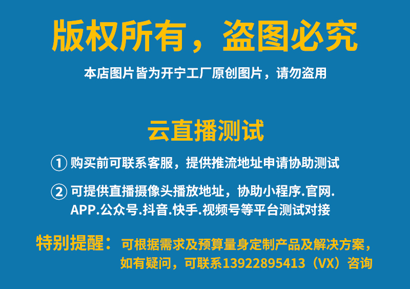 6、可接入網(wǎng)站.公眾號.小程序.APP;可對接抖音.快手.視頻號.淘寶.拼多多等平臺;