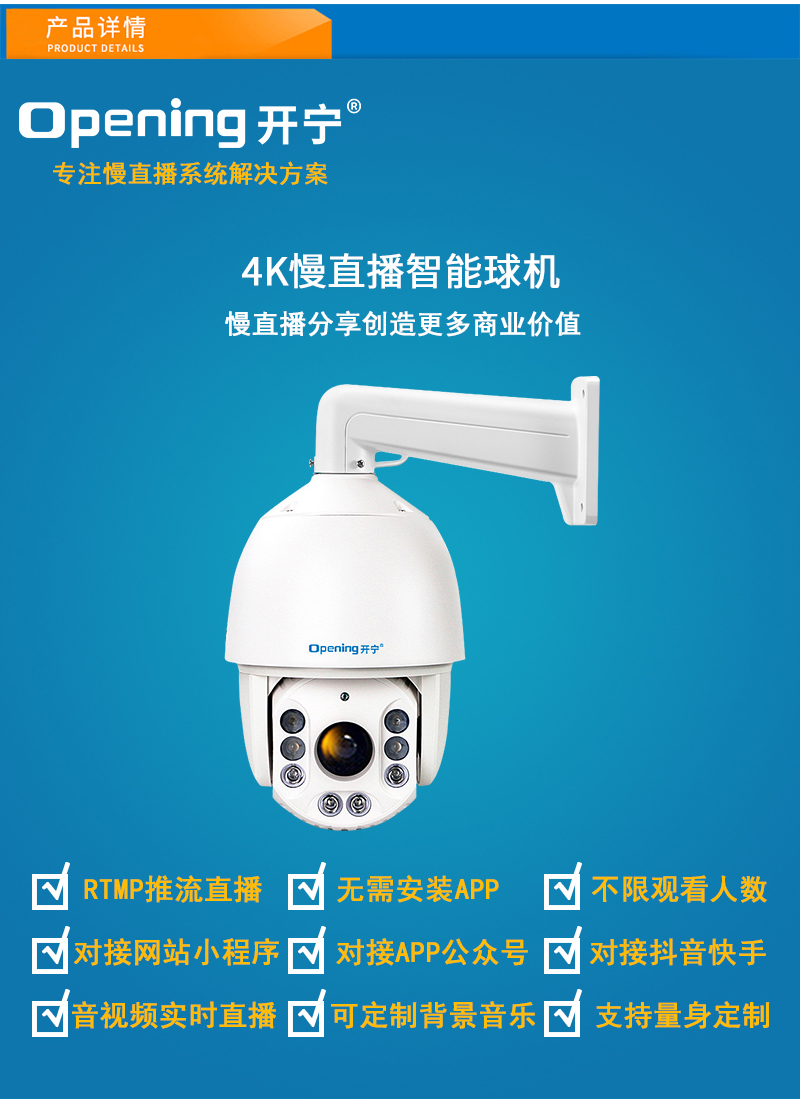 5、RTMP推流直播高清攝像頭;可生成慢直播二維碼,只需掃碼即可觀看慢直播;