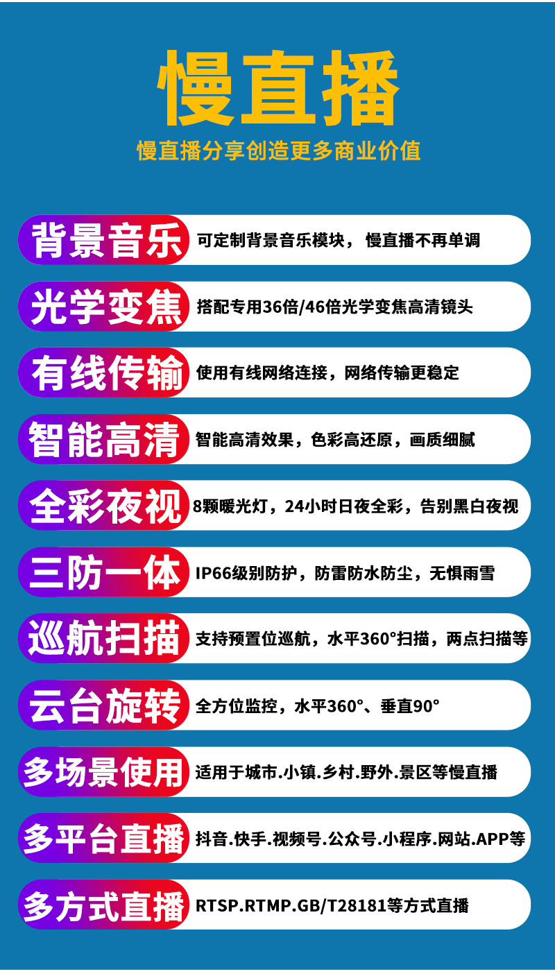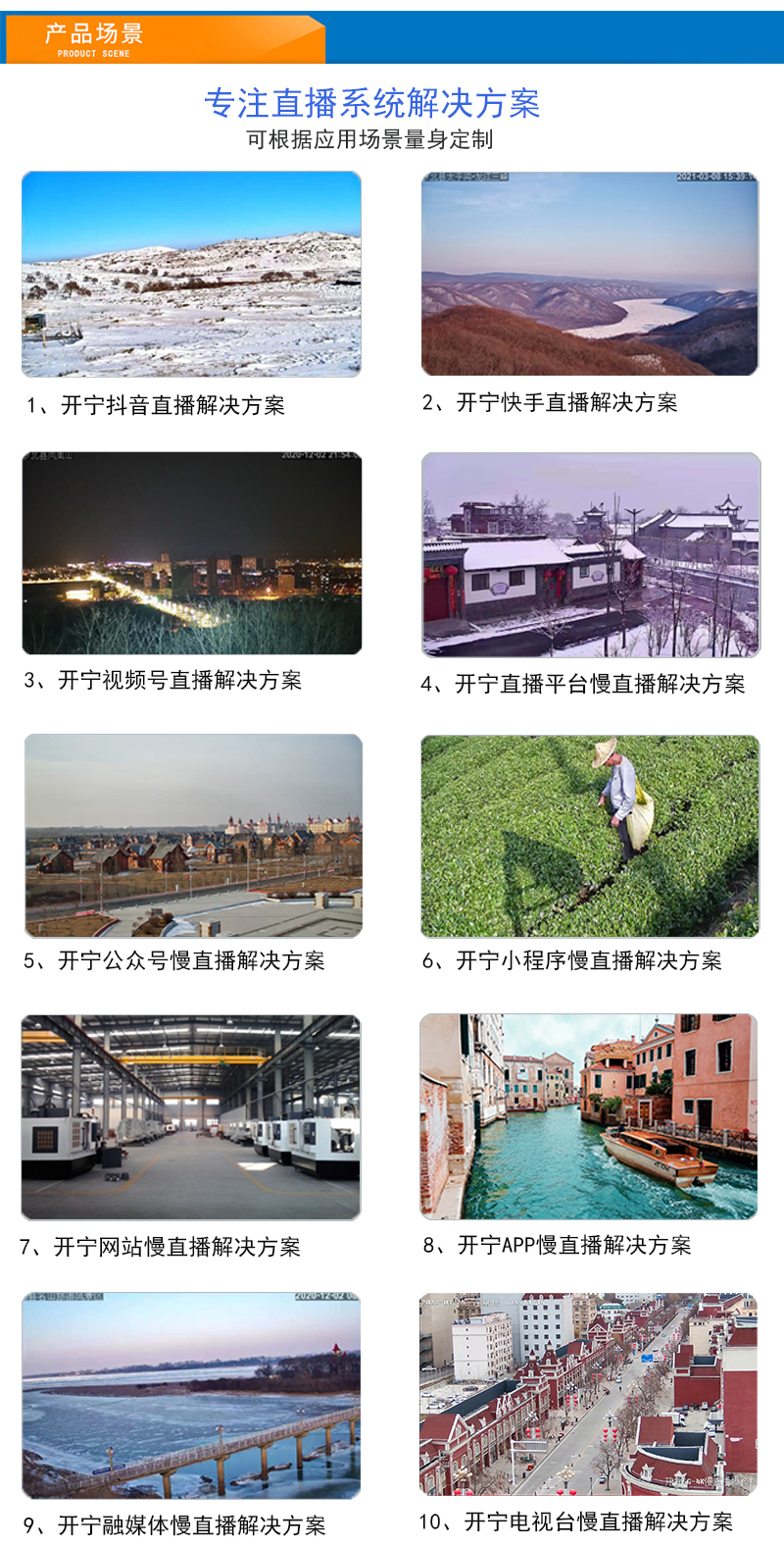3、智慧景區(qū).智慧農(nóng)業(yè).食品溯源.實(shí)景中國.在線驗(yàn)廠.店鋪直播.展會直播.慢直播等實(shí)時慢直播;