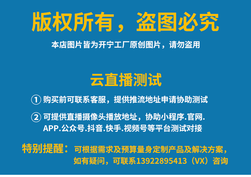 6、可接入網(wǎng)站.公眾號(hào).小程序.APP;可對(duì)接抖音.快手.視頻號(hào).淘寶.拼多多等平臺(tái);
