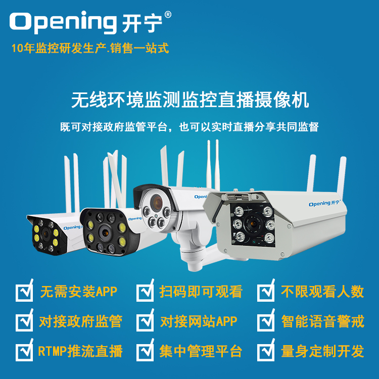 - 1、無線環(huán)境監(jiān)測直播監(jiān)控攝像機,一個攝像機就是一套監(jiān)控直播系統(tǒng);IP66防水等級;
