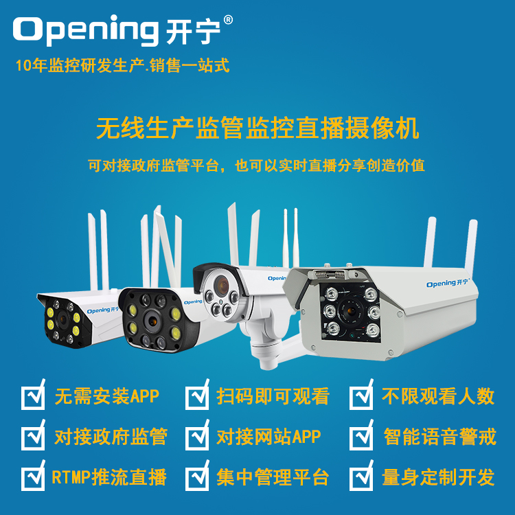 4、可接入網(wǎng)站.公眾號.小程序.APP;支持GB28181協(xié)議;可接公安.食品.工地.生產(chǎn).教育.畜牧.旅游等監(jiān)管部門平臺;