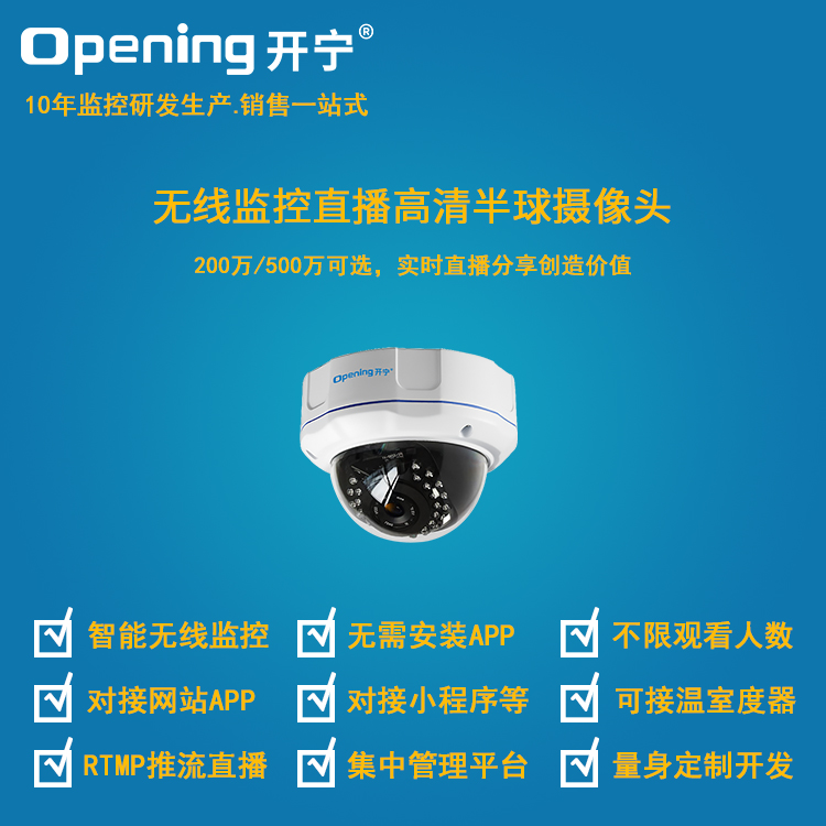 - 1、無線監(jiān)控直播高清半球攝像頭,一個(gè)攝像頭就是一套監(jiān)控直播系統(tǒng);