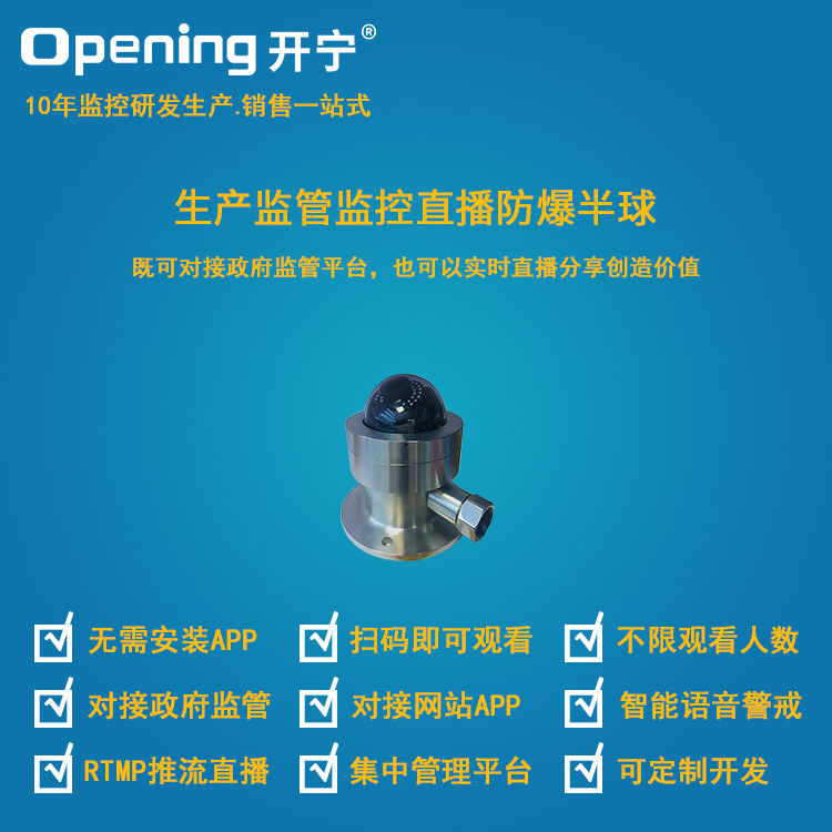 - 1、生產(chǎn)監(jiān)管監(jiān)控直播防爆半球,一個(gè)防爆半球就是一套監(jiān)控直播系統(tǒng);