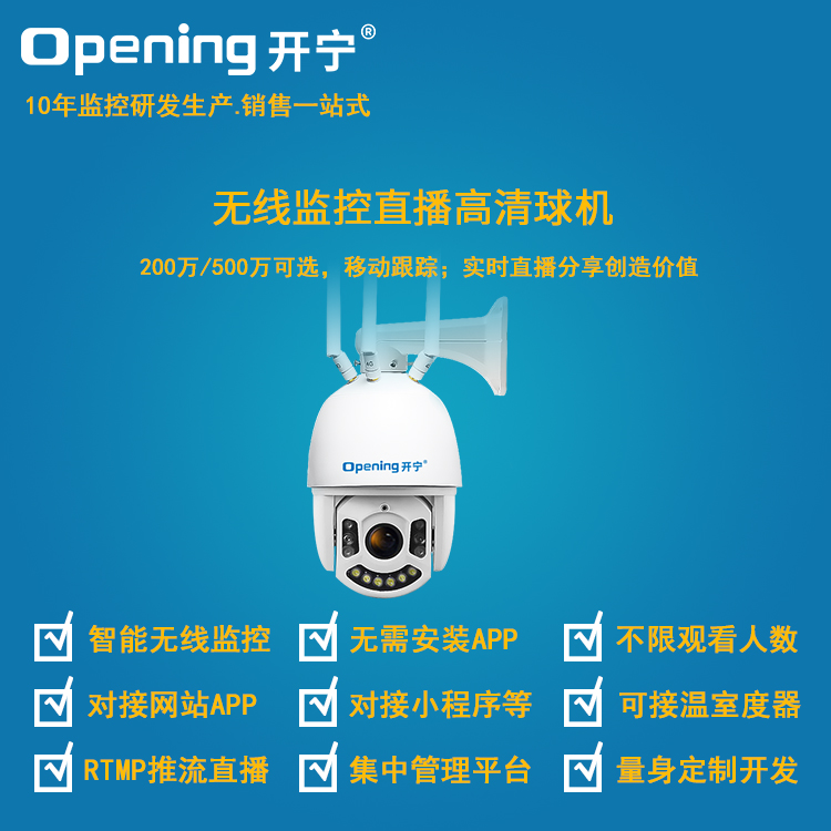 - 1、無(wú)線監(jiān)控直播高清智能球機(jī),一個(gè)球機(jī)就是一套監(jiān)控直播系統(tǒng);支持360度旋轉(zhuǎn),支持預(yù)置點(diǎn)和巡航,30倍光學(xué)變焦,IP66防水等級(jí);