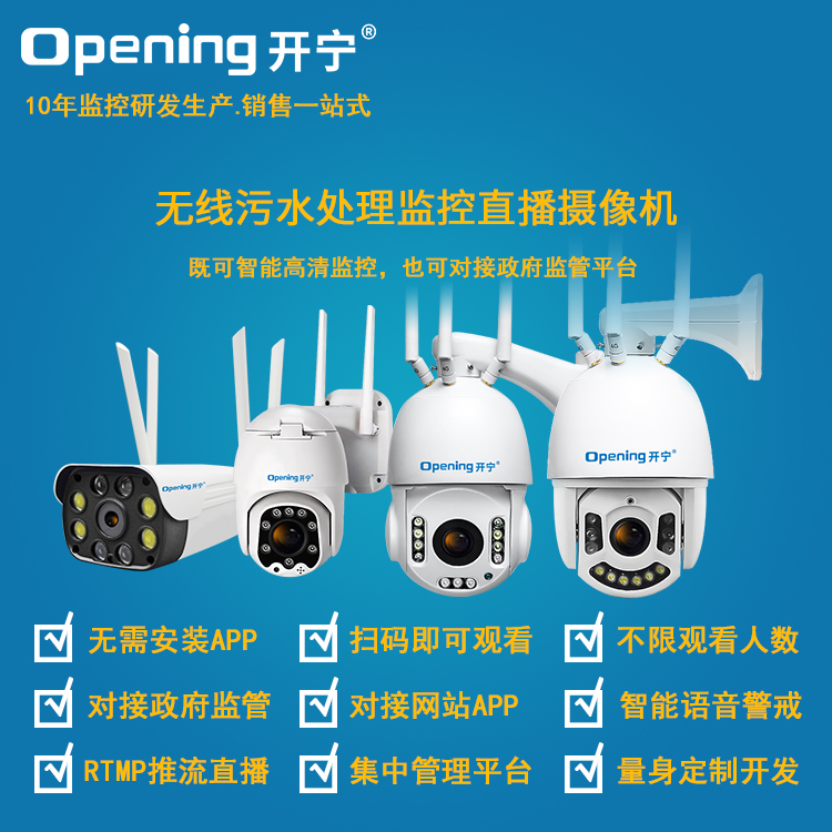 - 1、無線污水處理監(jiān)控直播攝像機,一個攝像機就是一套監(jiān)控直播系統(tǒng);政府監(jiān)管好幫手;