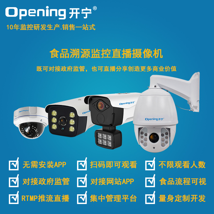 - 1、食品監(jiān)管監(jiān)控直播攝像機(jī),一個(gè)攝像機(jī)就是一套監(jiān)控直播系統(tǒng);食品監(jiān)管好幫手;